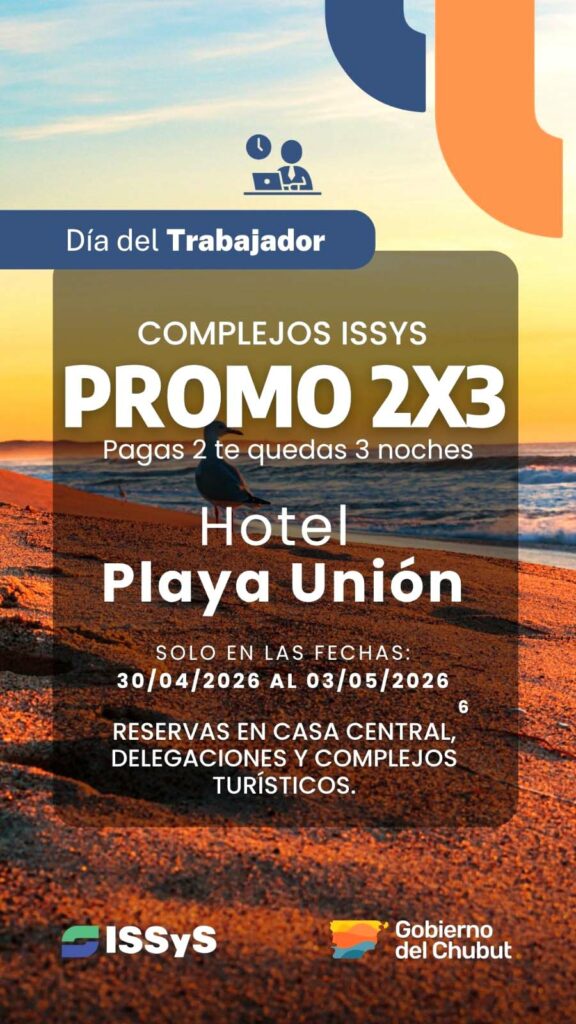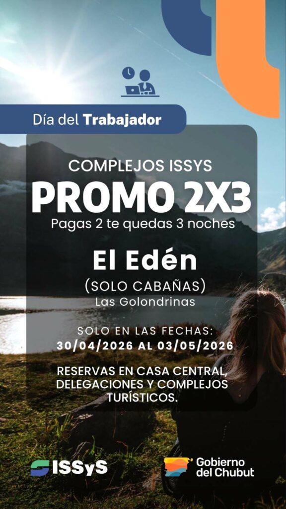 En el marco del Día del Trabajador, el Instituto de Seguridad Social y Seguros del Chubut (ISSyS) presenta una promoción especial en sus complejos turísticos, destinada a afiliados y afiliadas que deseen disfrutar de una escapada con beneficios exclusivos.